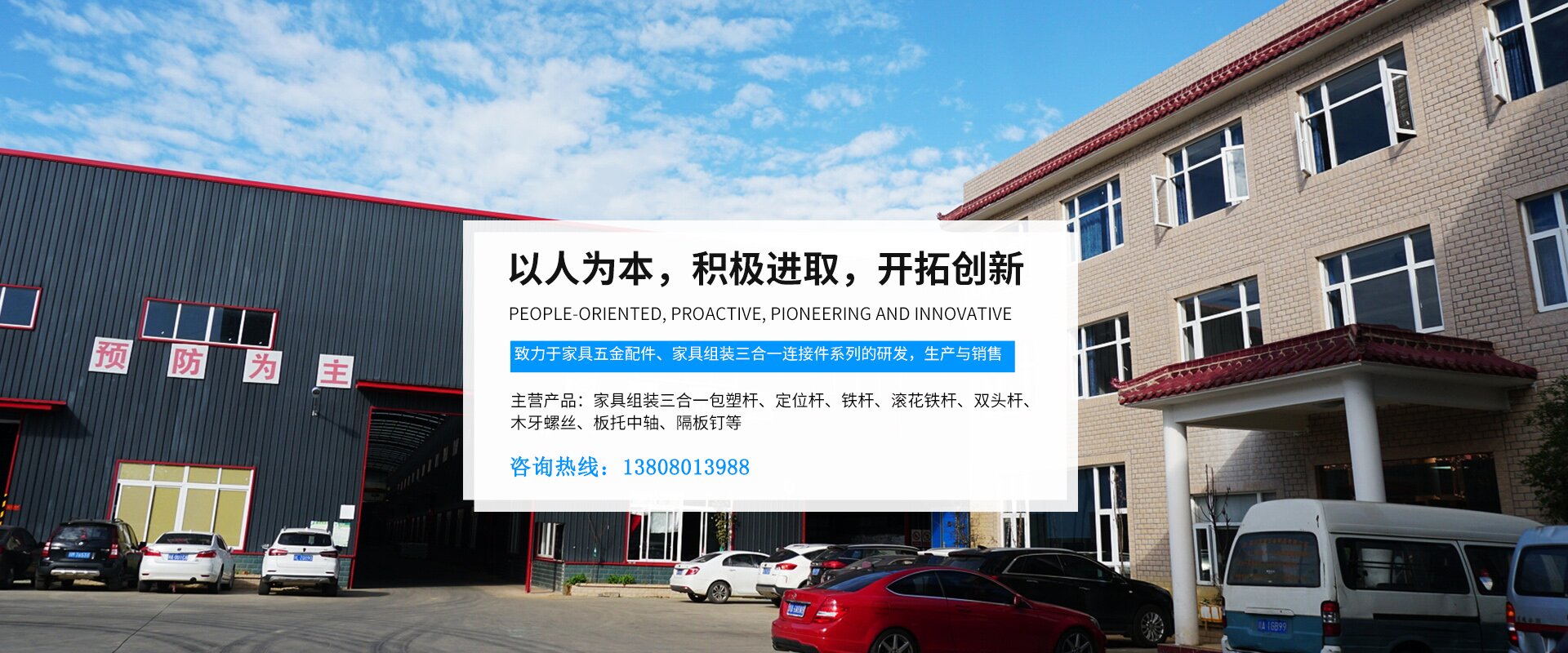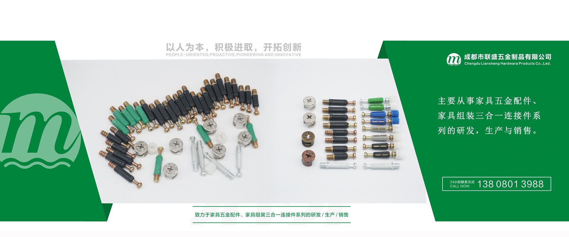 成都市聯(lián)盛五金制品有限公司成立于2012年,現(xiàn)擁有廠房面積16000平方米,主要從事家具五金配件、家具組裝三合一連接件系列的研發(fā),生產(chǎn)與銷售。公司目前主營產(chǎn)品:家具組裝三合一包塑桿、定位桿、鐵桿、滾花鐵桿、雙頭桿、木牙螺絲、板托中軸、隔板釘?shù)取?br>